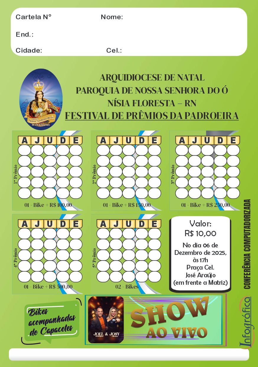 Cartelas para sorteios de bingos com ou sem conferência presencial